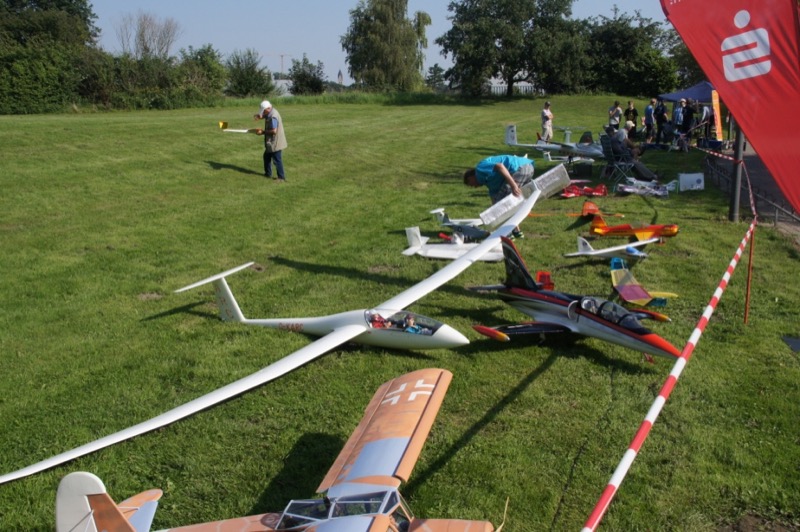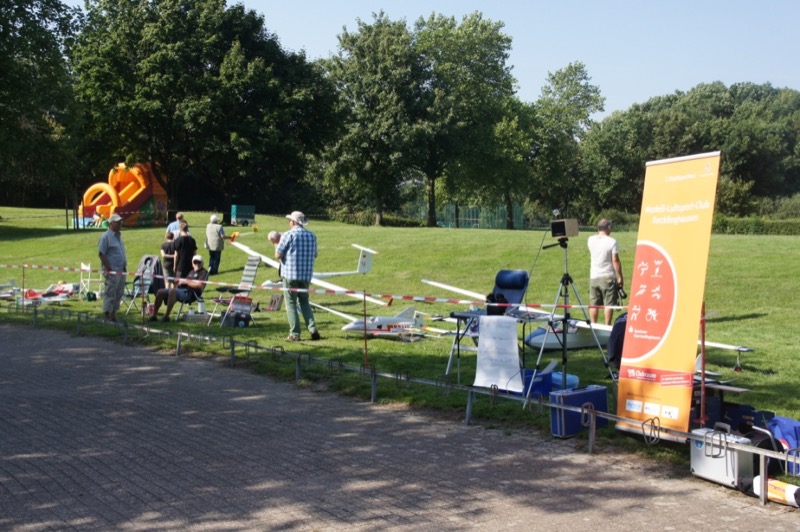Auch wir waren mit einer großen Zahl von Mitgliedern und Modellen vertreten. Unter unseren Pavillions wurde neben einem Flugsimulator auch der Bau von Wurfgleitern angeboten. Viele Kinder und Jugendliche haben unter der Anleitung von Alfred, Thomas, Julian und Ben Wurfgleiter gebaut, die am Rande der Flugwiese ausprobiert werden konnten.