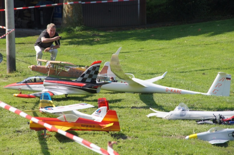 Neben den unter der Flugleitung von Dirk durchgeführten Flugvorführungen und Lehrer-/Schüler-Flügen von Reinhard, Alfred, Detlef und Franz-Josef stießen die FPV Flüge von Markus auf besonders großes Interesse. Leider führte der böige und durch die Bäume sehr verwirbelte Wind dazu, dass im Laufe des Tages nur beschränkt geflogen werden konnte. Aber allein die Vielzahl der unterschiedlichsten ausgestellten Modelle stieß großes Interesse bei den Besuchern.